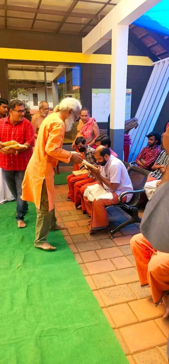 Guruji Avadhootha Nadanandaji, after the successful completion of Phase 1 treatment, endeavors to offer His Gratitude and Joy in the form of Gurudakshina & a traditional Sadya (Feast) to the Doctors, Attendants, inmates and other guests of Itoozhi Illam Ayurveda Foundation Trust today. Some of the curious minded enquired the purposeof this gesture in a genuine quest for clarity. The following points are for a better understanding of the Noble act of Guruji.