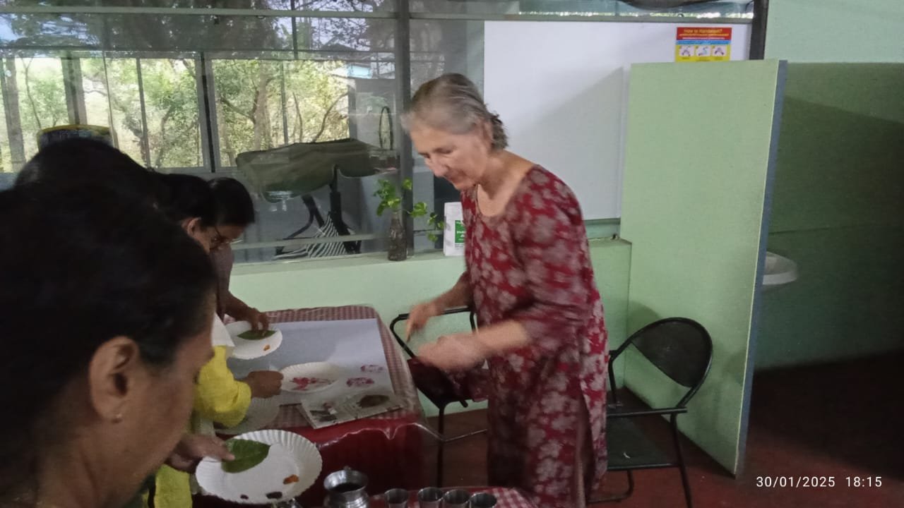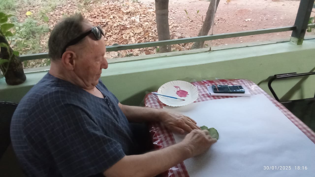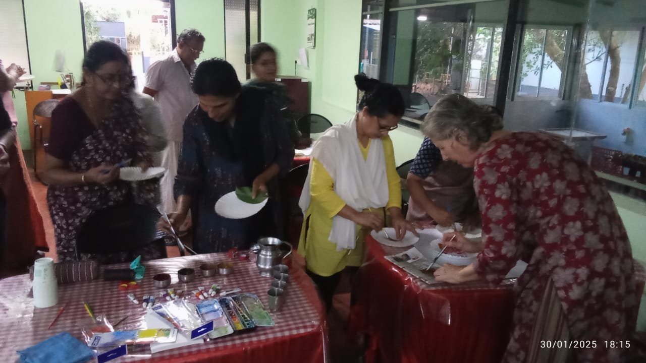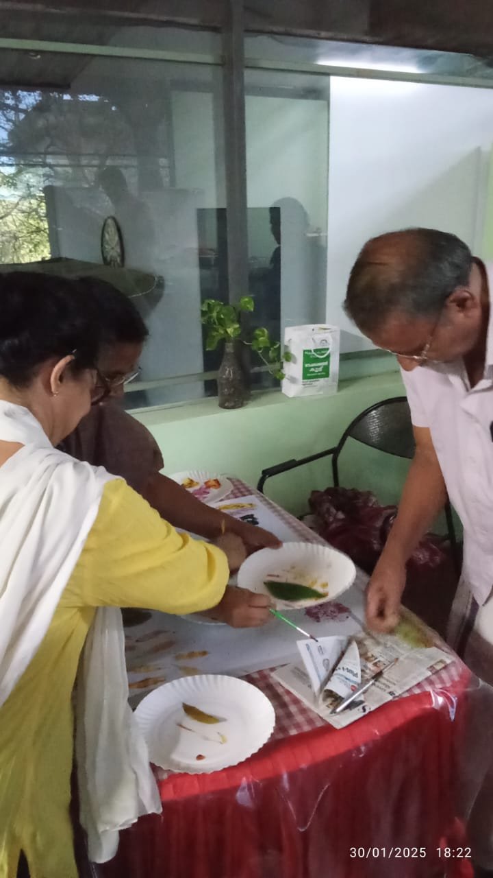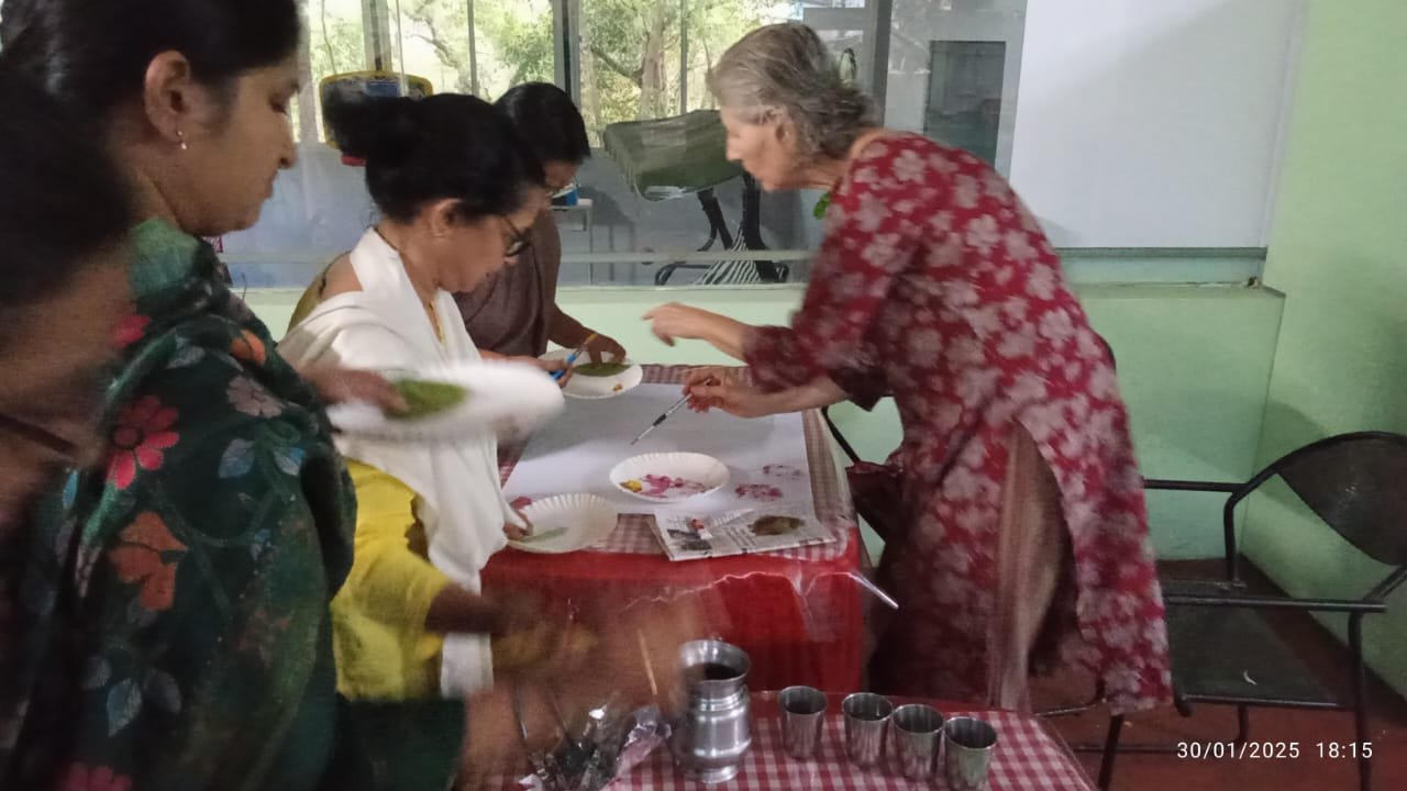 One such memorable session was led by Manuela Veccari, a longtime patron of Itoozhi Ayurveda and a dedicated participant in our annual treatment programs. She conducted a delightful painting workshop titled “I Am the Leaf”, where participants explored their creativity using watercolors and natural leaf samples to craft their own unique artwork.