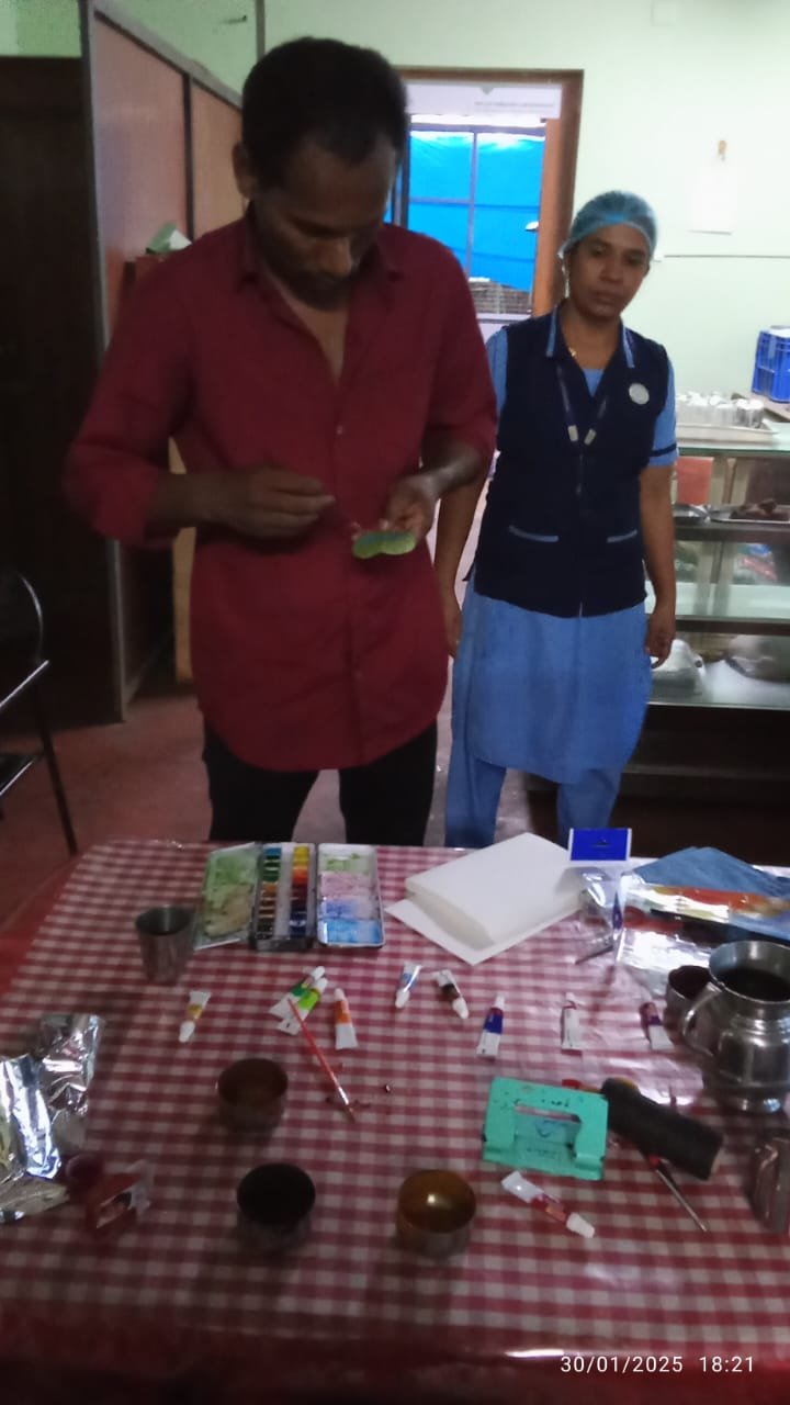 This session was not just about painting—it was about self-expression, mindfulness, and the joy of creation. The patients let their imaginations flow, translating emotions onto paper while connecting with nature’s elements. It was a moment of calm, reflection, and shared happiness, with each artwork symbolizing individual journeys through healing.